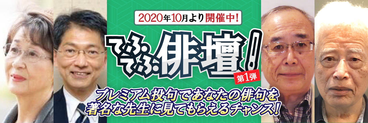 てふてふ俳壇スタート!超豪華な先生方が登場!期間中に「プレミアム投句」から投稿された俳句はすべて先生のもとに届き、期間終了時に「特選」「佳作」「がんばろう」の評価が届くよ!俳句の実力を試してみよう!